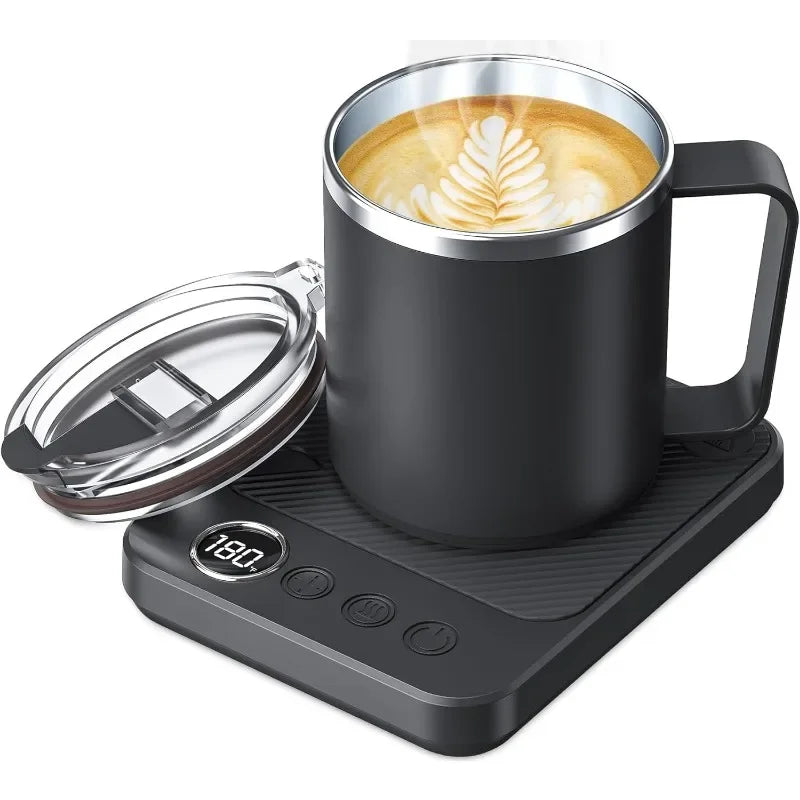 Paired with a 16oz food-grade 304 stainless steel mug, this powerful 36W warmer heats your drink faster than standard ceramic mugs—reaching up to 180°F so your coffee is not just warm, but actually hot. -