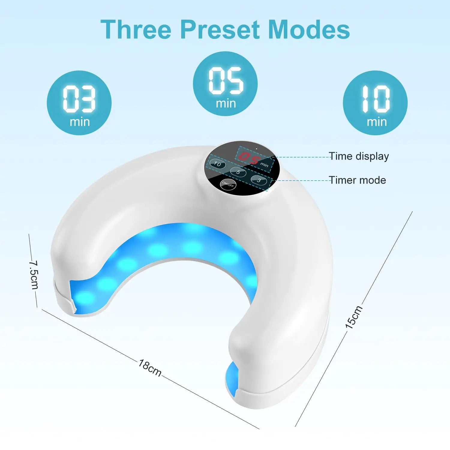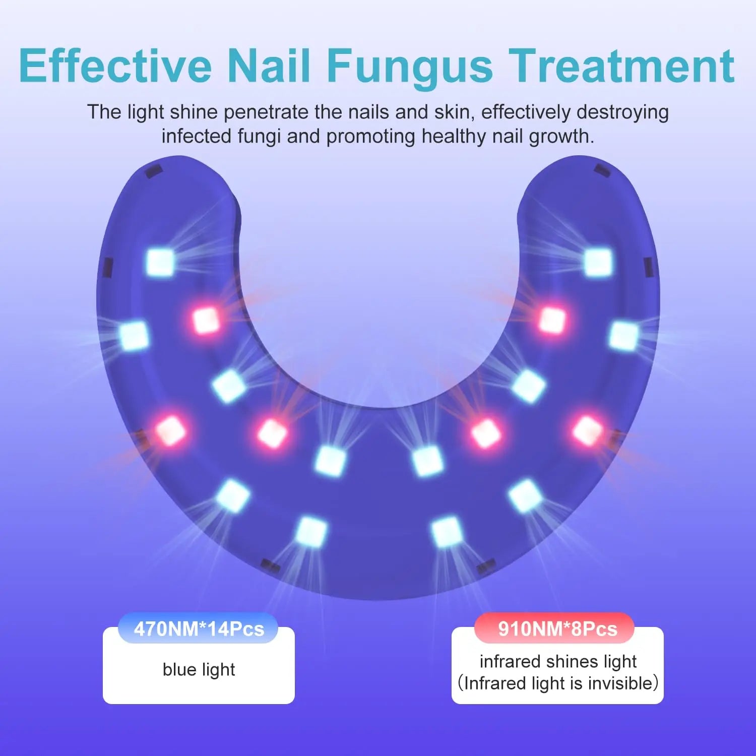 Equipped with 14 blue LEDs (470nm) and 8 infrared LEDs (910nm), this device delivers deeply targeted light therapy to promote natural nail healing—reaching 2.3mm beneath the nail surface for powerful results. -
